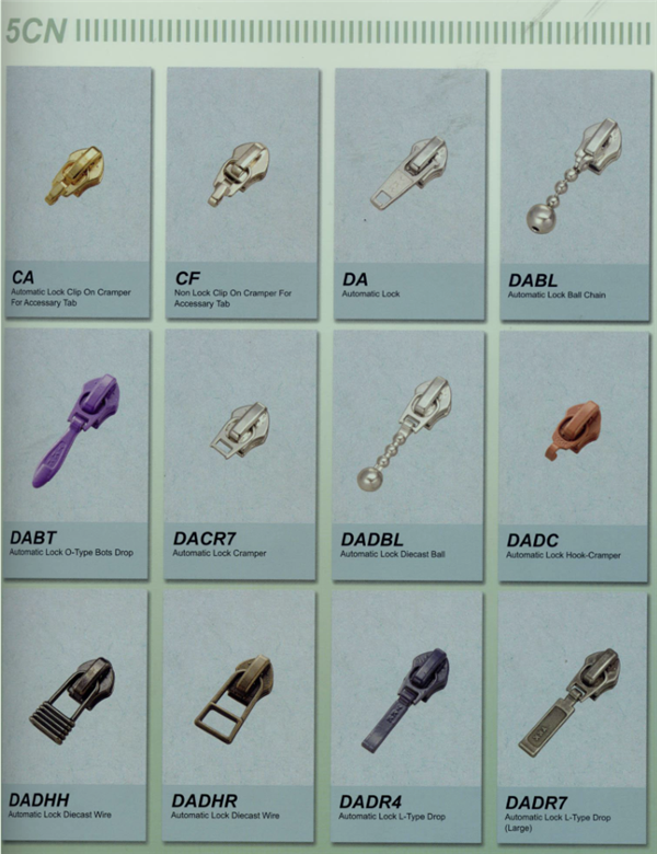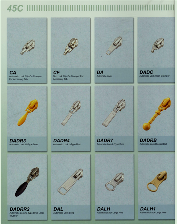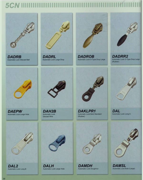 YKK樹脂牙拉鏈及拉頭、YKK金屬牙拉鏈及拉頭、YKK Y牙牛仔系列拉鏈等。